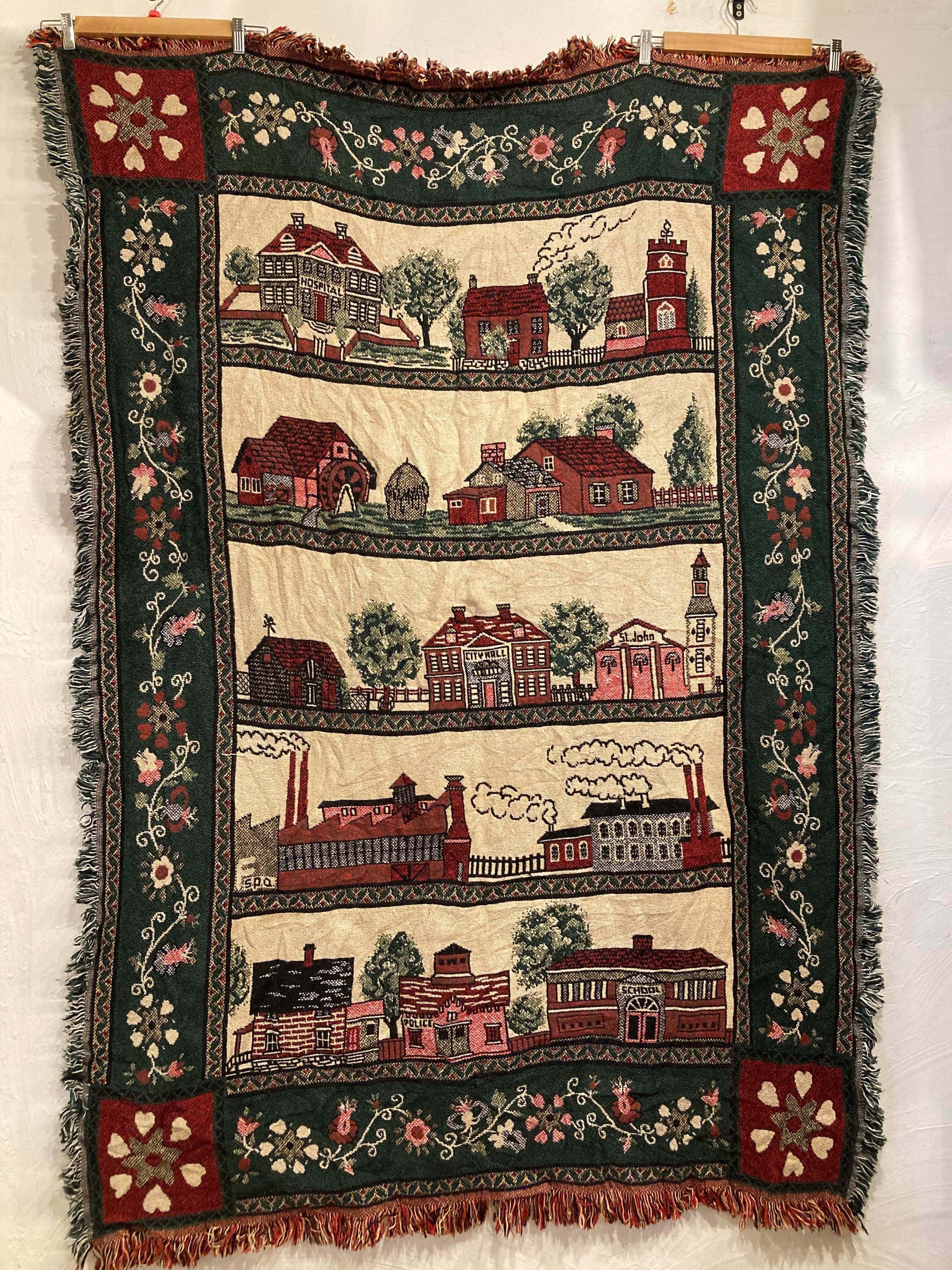 604 ヨーロッパ 街並み 花柄 家 ラグ マット カーペット ブランケット マルチカバー タペストリー テーブルクロス 絨毯 インテリア雑貨
