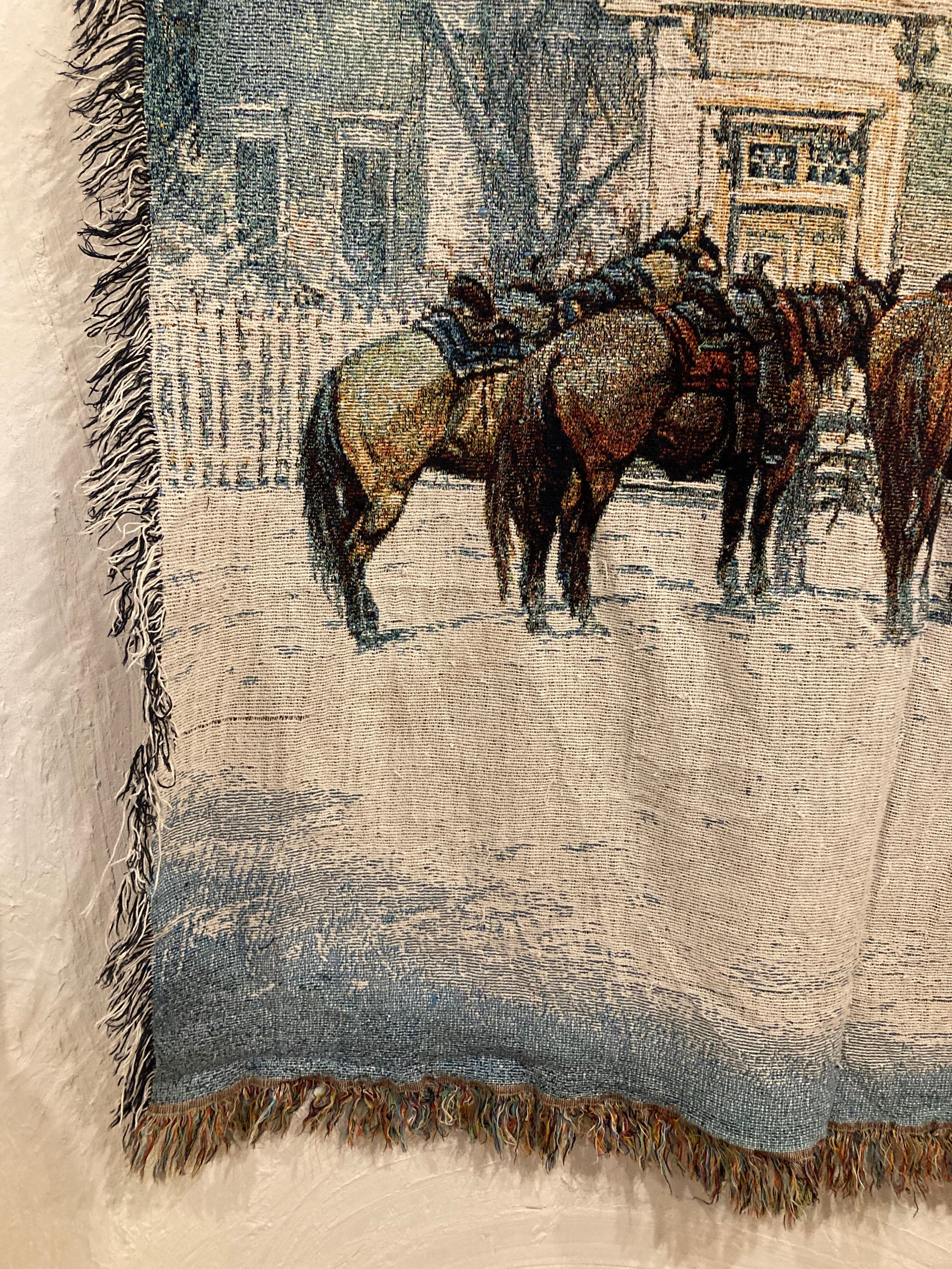 732 馬 ウマ アニマル柄 雪景色 ラグ マット カーペット ブランケット マルチカバー タペストリー テーブルクロス 絨毯 インテリア雑貨